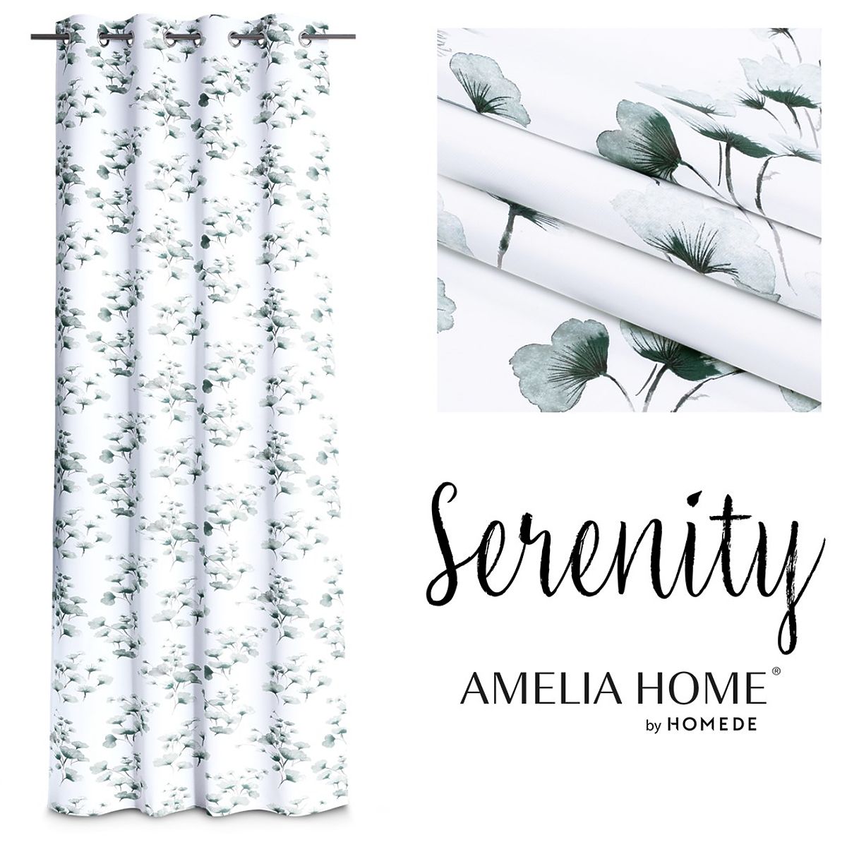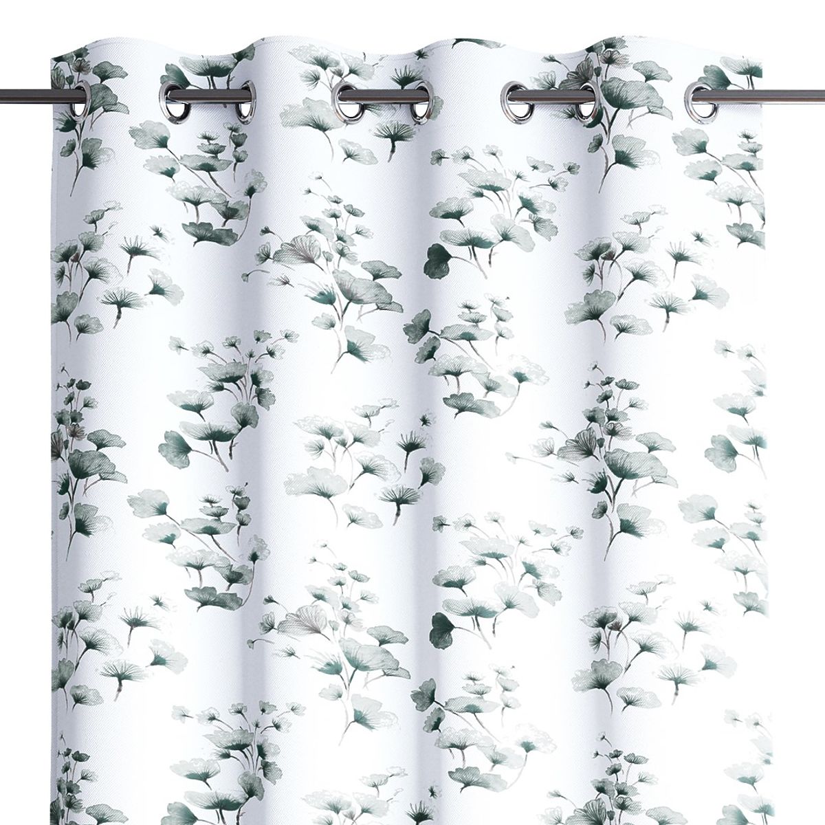 Lukahome.pl » Zasłony i kurtyny / Zasłony / Zasłona SERENITY biały kolor z nadrukiem roślinnym klasyczny styl srebrne metalowe przelotki