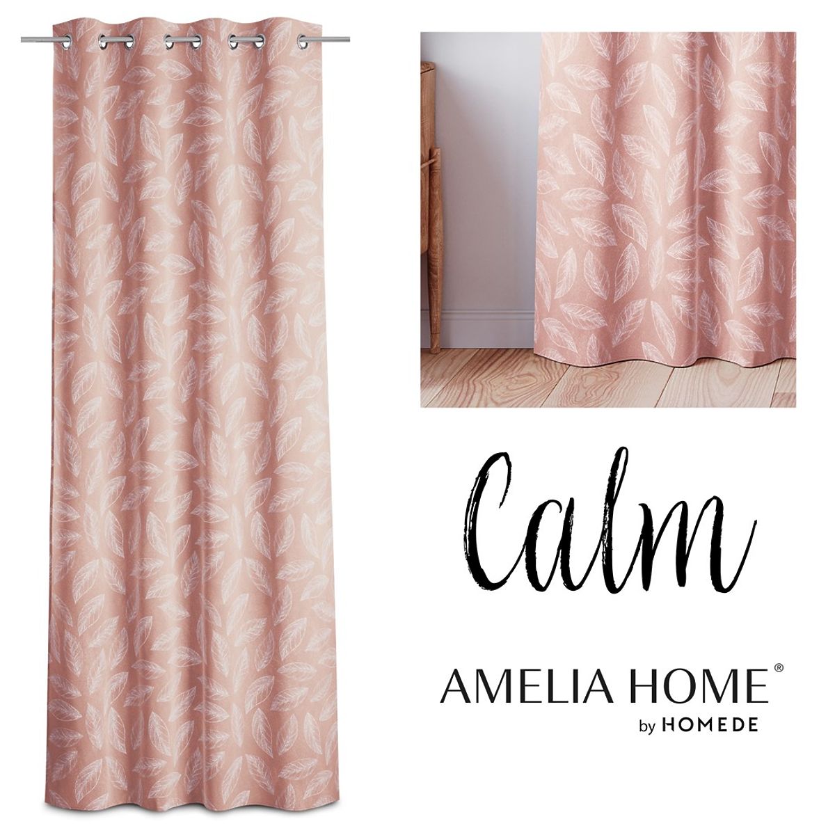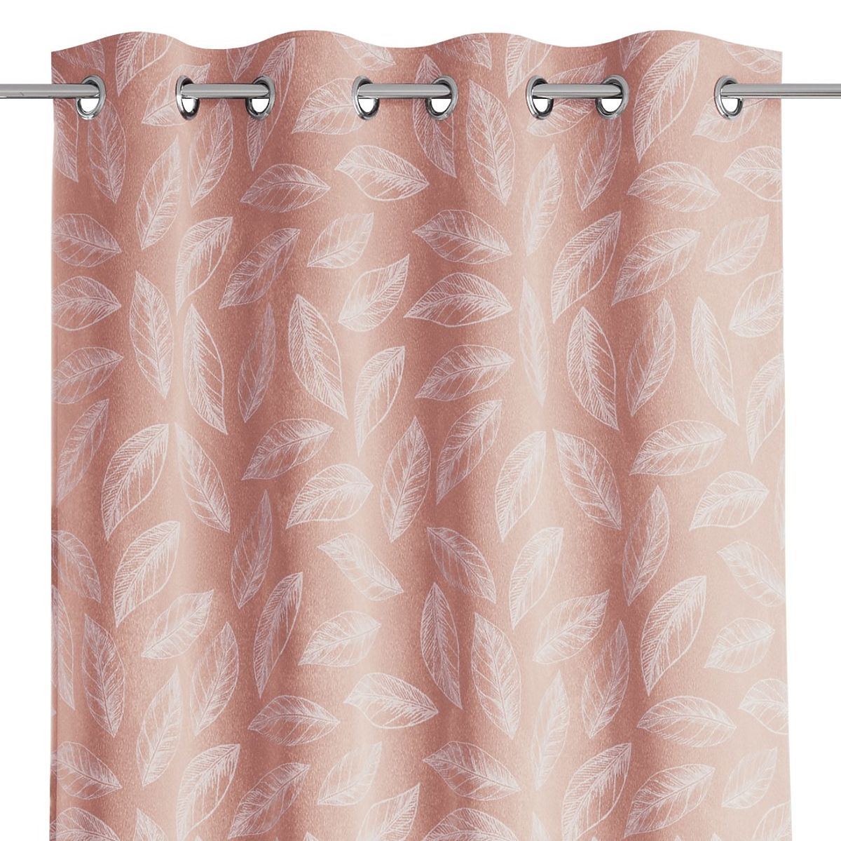 Lukahome.pl » Zasłony i kurtyny / Zasłony / Zasłona CALM kolor pudrowy różowy z nadrukiem roślinnym klasyczny styl srebrne metalowe przelotki
