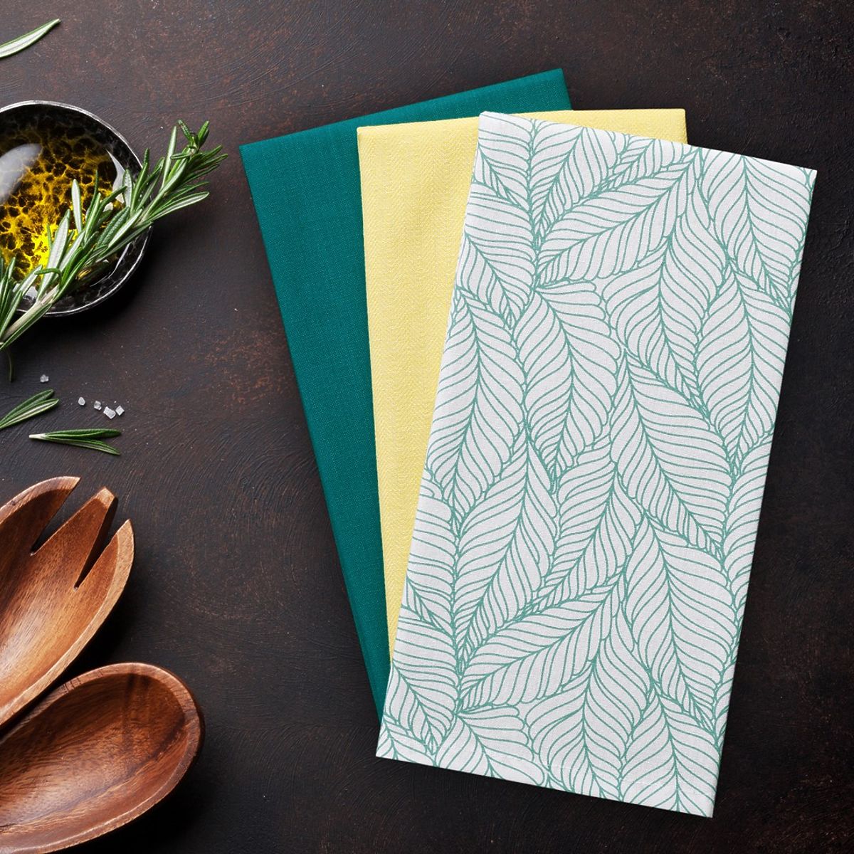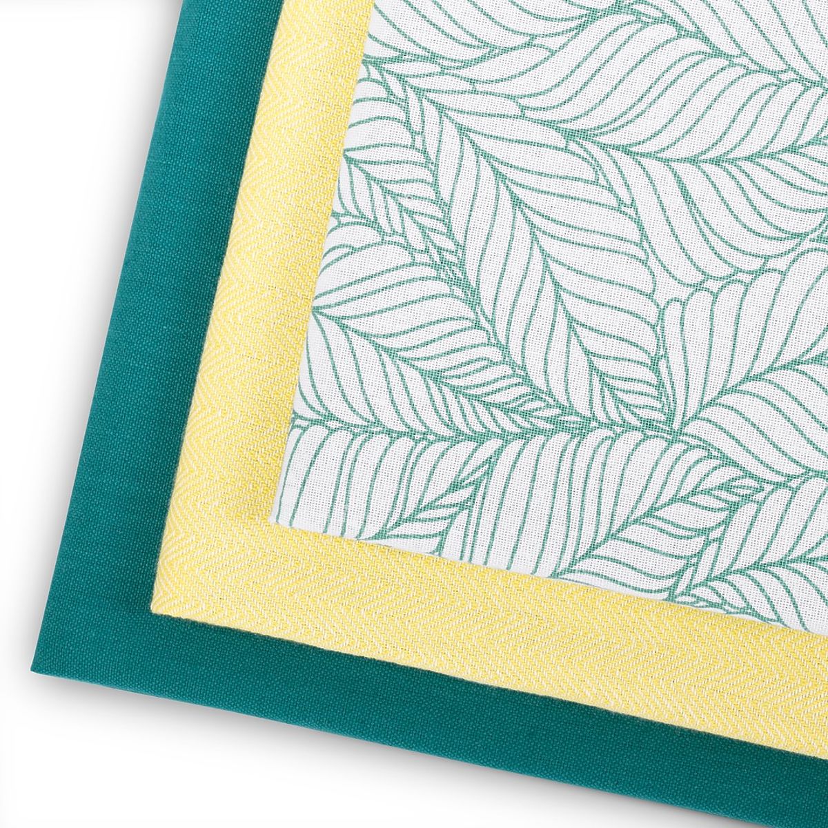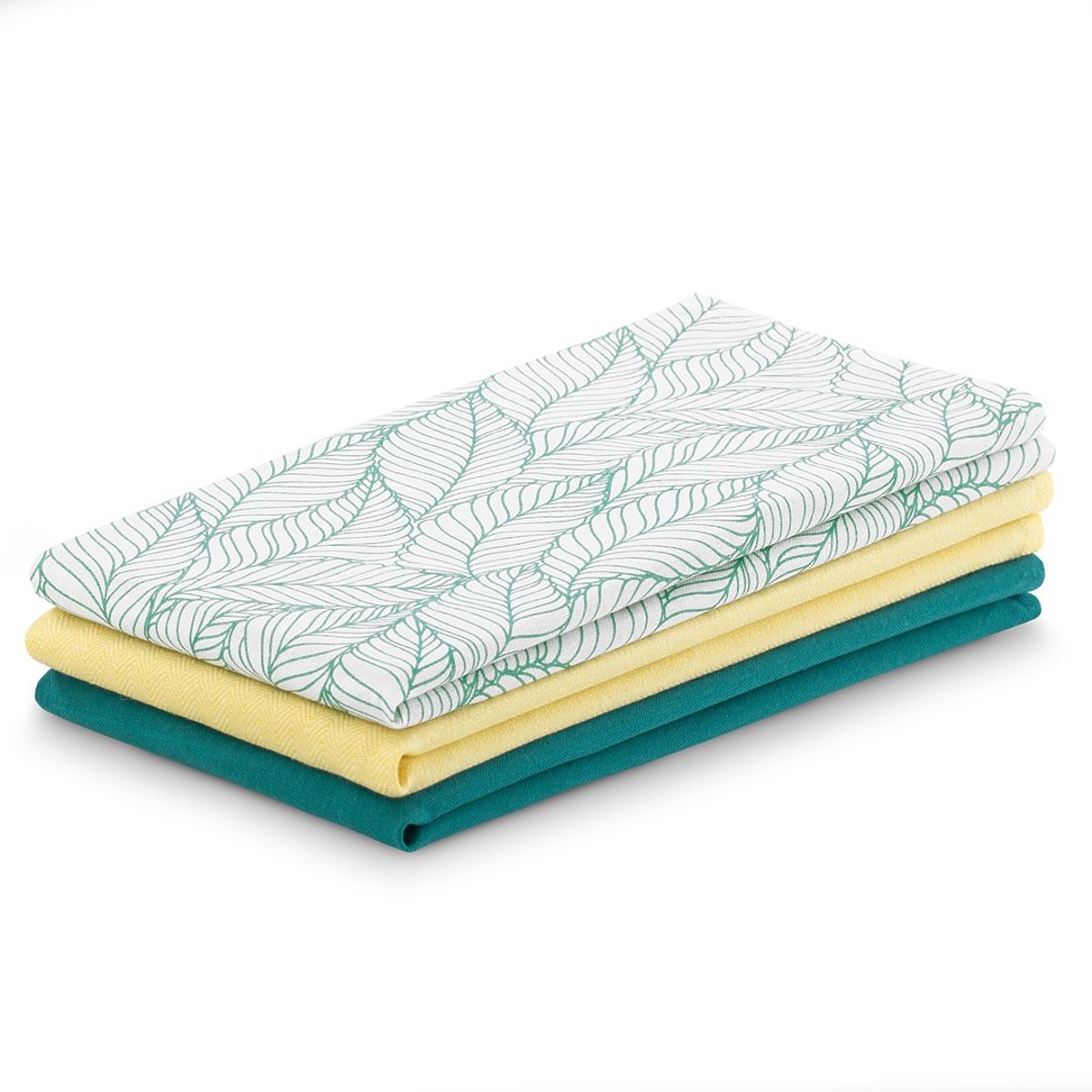 Zestaw trzech nowoczesnych ręczników kuchennych w kolorze turkusowym i żółtym. .. więcej
