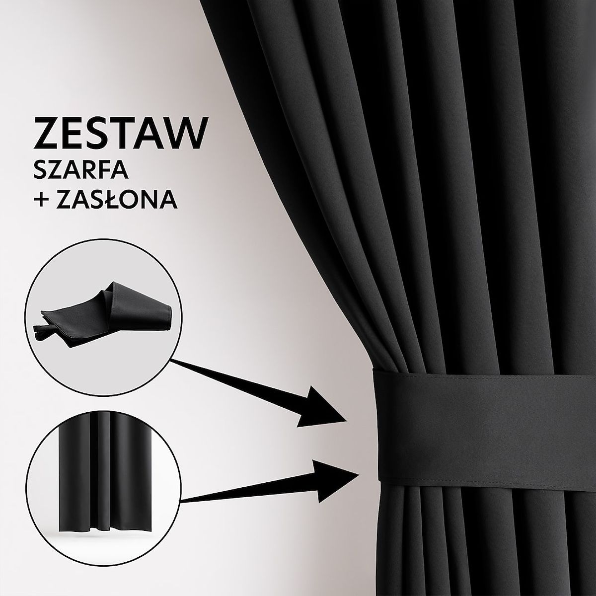 Lukahome.pl » Zasłony i kurtyny / Zasłony / RESTILO zasłona BLACKOUT kolor czarny, szarfa do ściągania, styl klasyczny, srebrne przelotki, mater