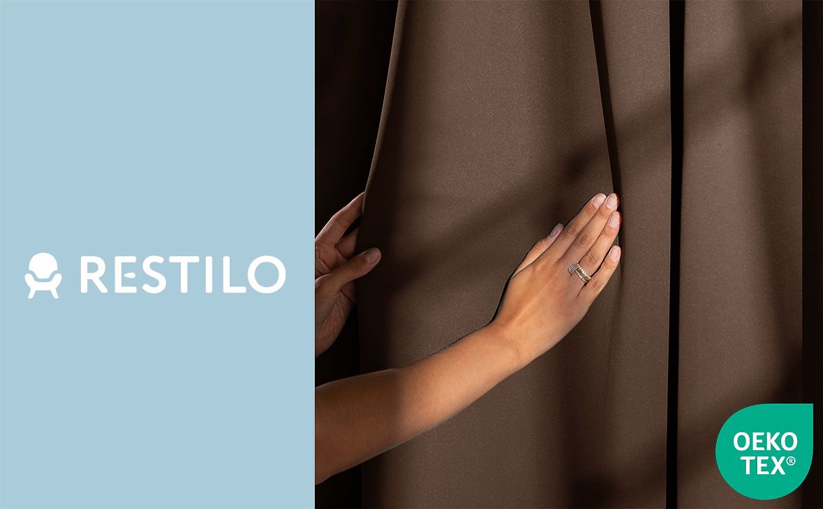 Lukahome.pl » Zasłony i kurtyny / Zasłony / RESTILO zasłona BLACKOUT kolor brązowy, szarfa do spięcia, styl klasyczny, srebrne przelotki, materi
