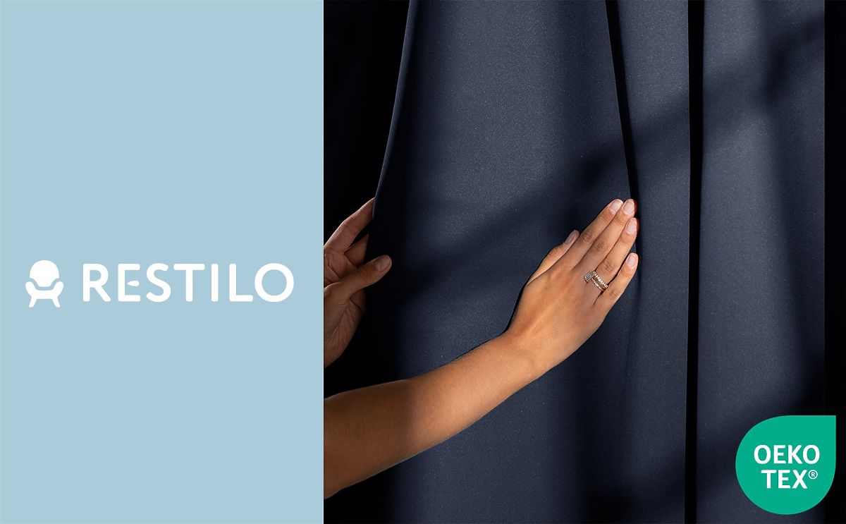 Lukahome.pl » Zasłony i kurtyny / Zasłony / RESTILO zasłona BLACKOUT kolor indygo z taśmą ściągającą klasyczny styl srebrne przelotki materiał b