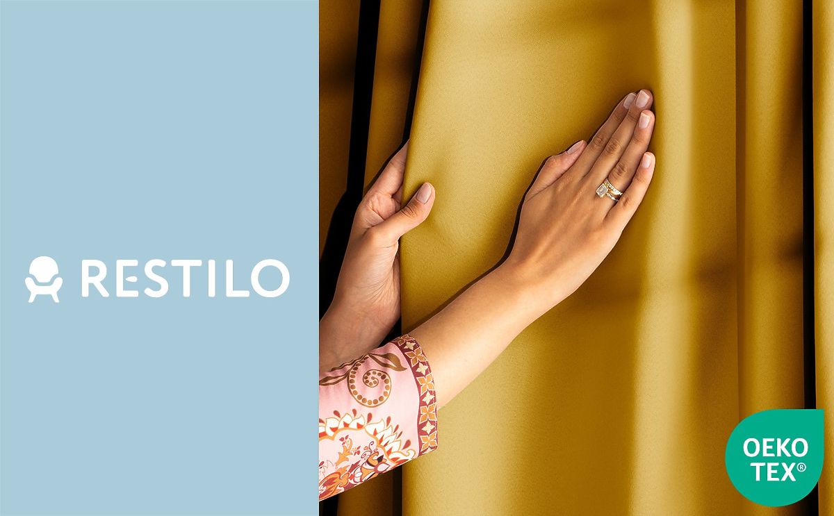 Lukahome.pl » Zasłony i kurtyny / Zasłony / RESTILO zasłona BLACKOUT kolor musztardowy klasyczny styl srebrne przelotki materiał