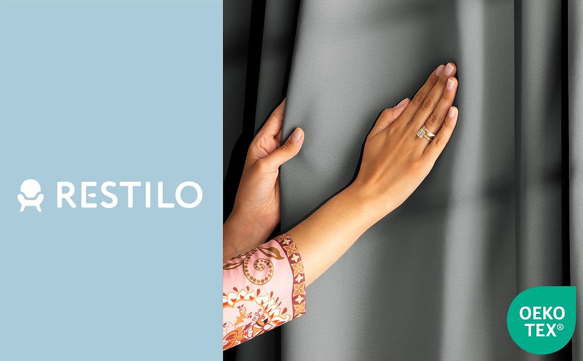 Lukahome.pl » Zasłony i kurtyny / Zasłony / RESTILO zasłona BLACKOUT kolor szary, szarfa, styl klasyczny, srebrne przelotki, materiał blackout