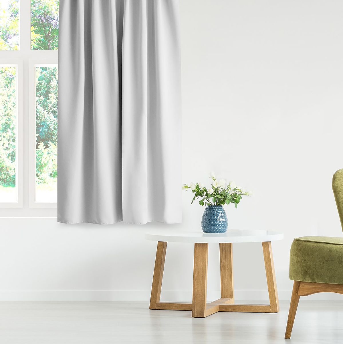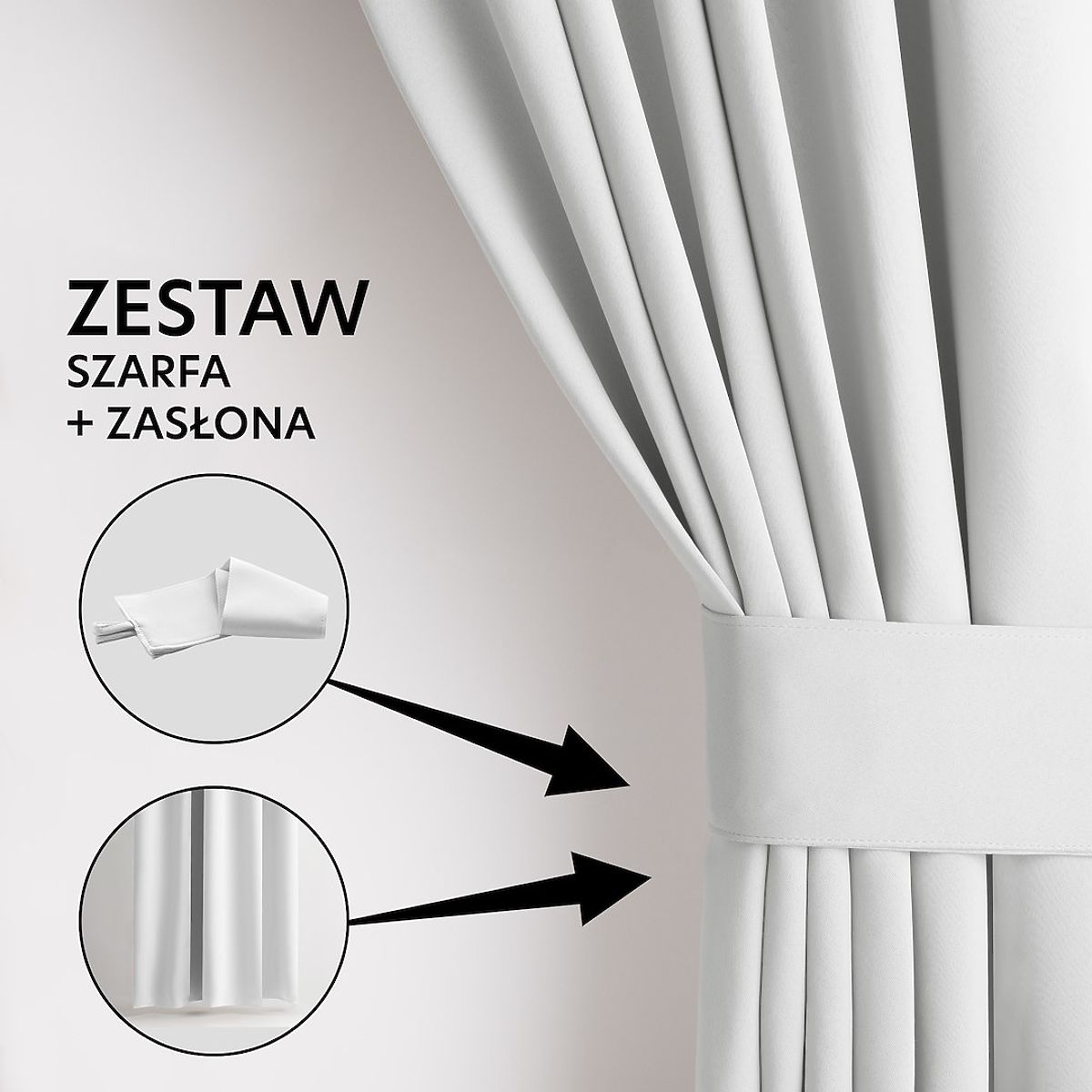 Lukahome.pl » Zasłony i kurtyny / Zasłony / RESTILO zasłona BLACKOUT kolor biały, szarfa do mocowania, styl klasyczny, srebrne przelotki, materi