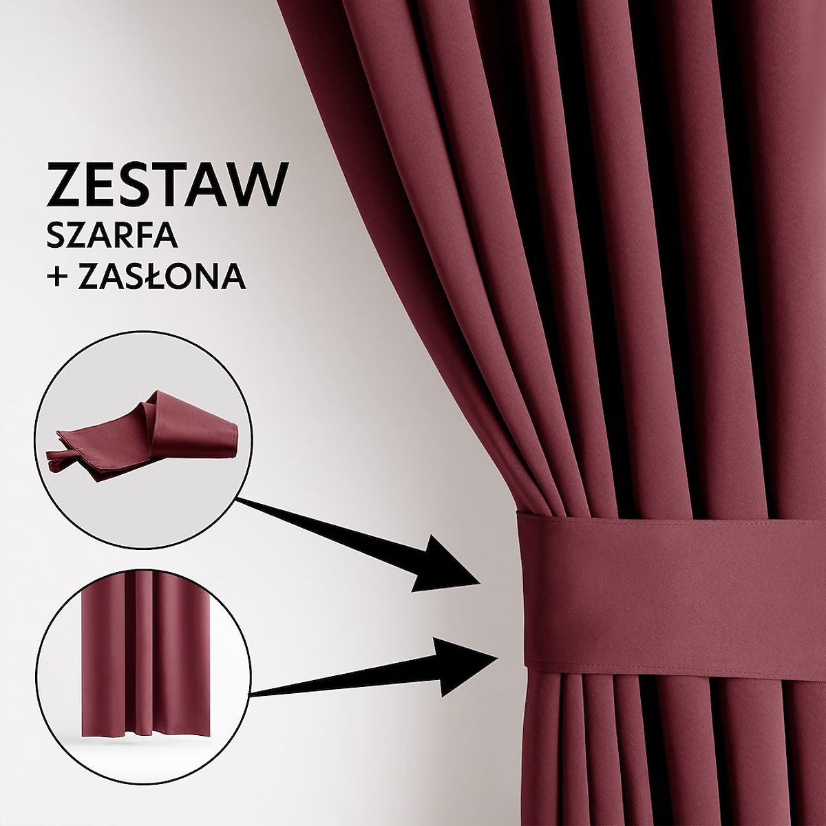 Zasłona zaciemniająca z czerwonym wykończeniem i srebrnymi przelotkami. .. więcej