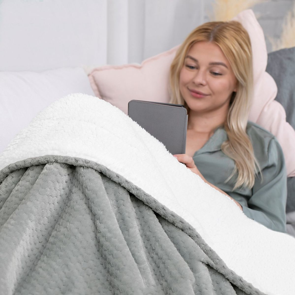 Lukahome.pl » Pościel / Narzuty i koce / Narzuta SHLEEPY szary kolor z wzorem żakardowym styl klasyczny 220x240