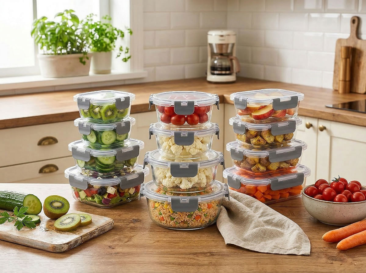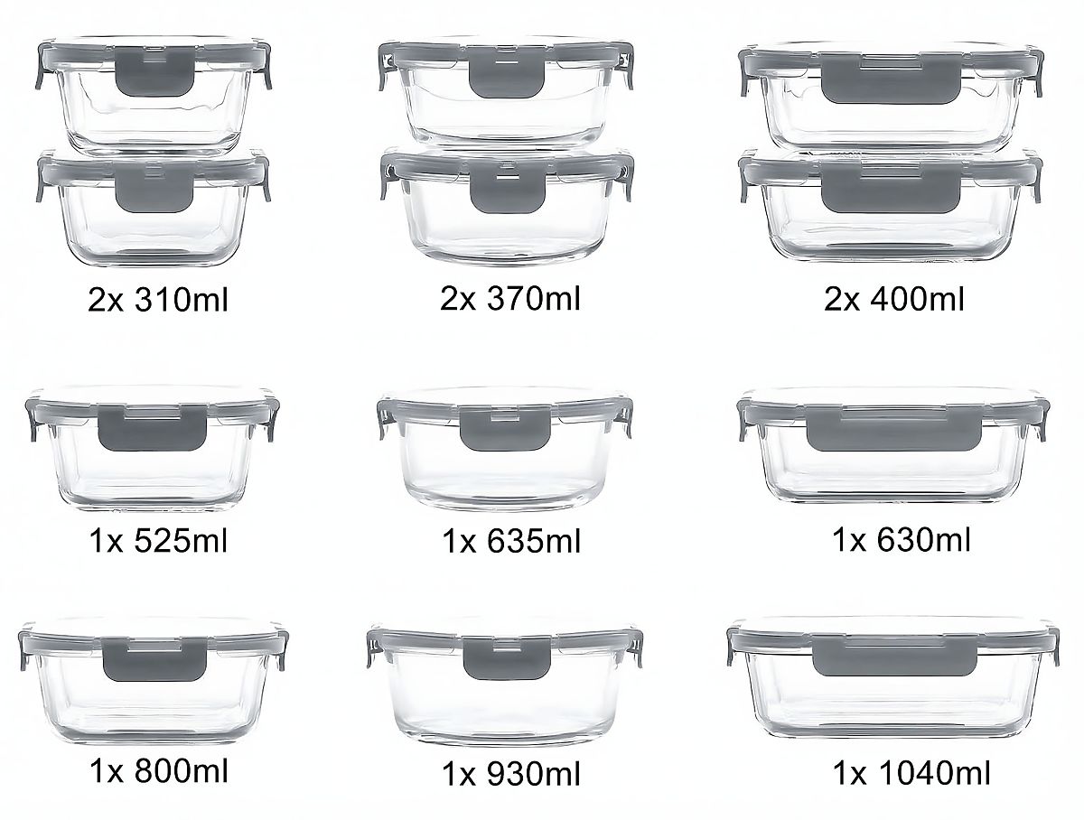 Szklane pojemniki na żywność CATONIA - zestaw 12 sztuk