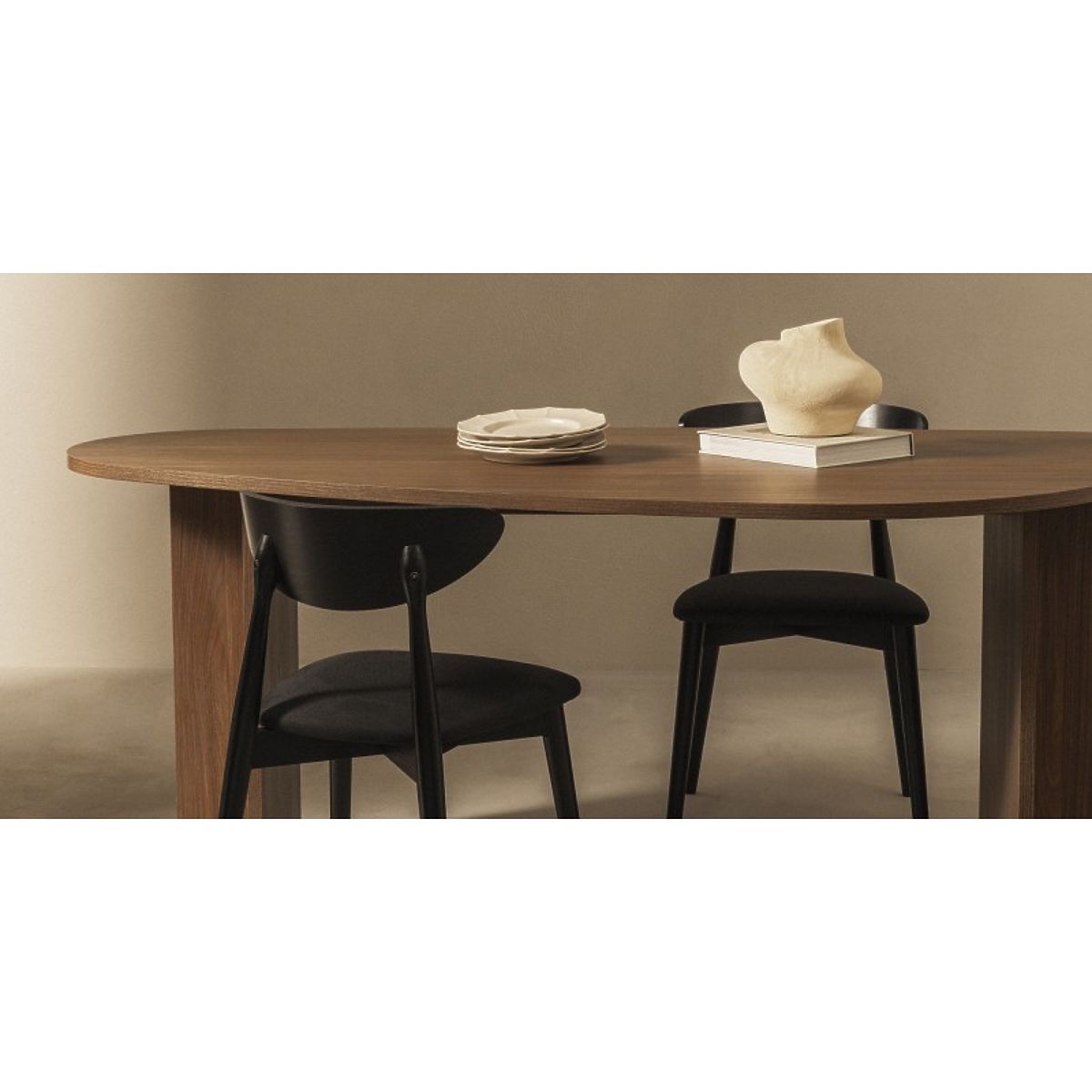 Stół jadalniany Zeva zachwyca swoim unikalnym, nieregularnym kształtem blatu, który nadaje wnętrzu nowoczesny i artystyczny charakter. Wykonany z solidnej laminowanej płyty w odcieniu Orzech lincoln, oferuje wygodne miejsce dla nawet dziesięciu osób, łącząc funkcjonalność z odważnym designem.