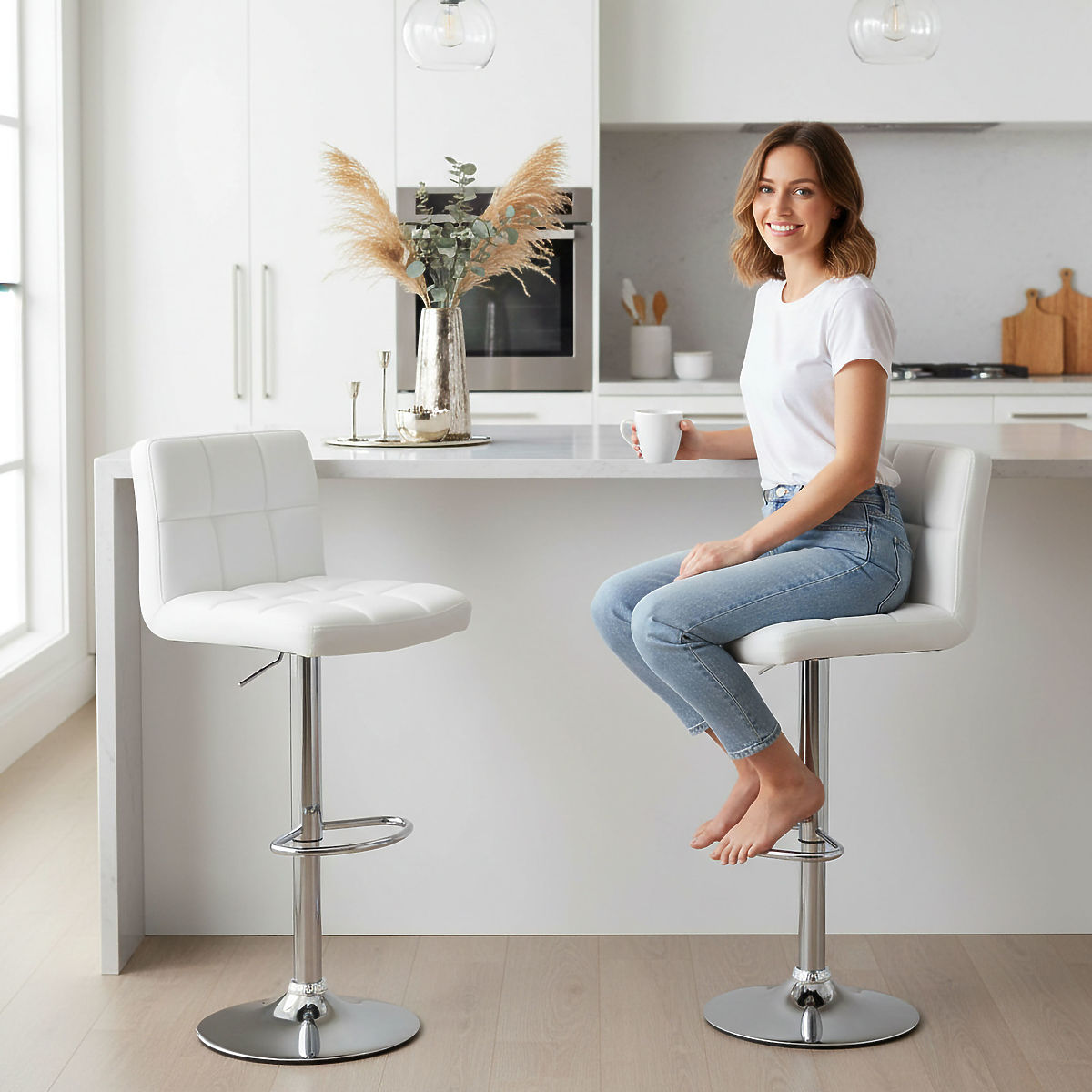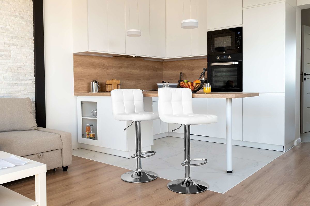 Obrotowy hoker Arako to doskonałe rozwiązanie dla tych, którzy szukają elegancji, funkcjonalności i komfortu w jednym. Dzięki nowoczesnemu designowi i wysokiej jakości wykonaniu idealnie pasuje do domowych wnętrz. Komfortowe siedzisko z ekoskóry i wygodny podnóżek zapewniają wygodę nawet przy długotrwałym użytkowaniu. Obrotowa konstrukcja i możliwość regulacji wysokości pozwalają, aby krzesło dostosowało się do każdego użytkownika i różnych aranżacji wnętrz.