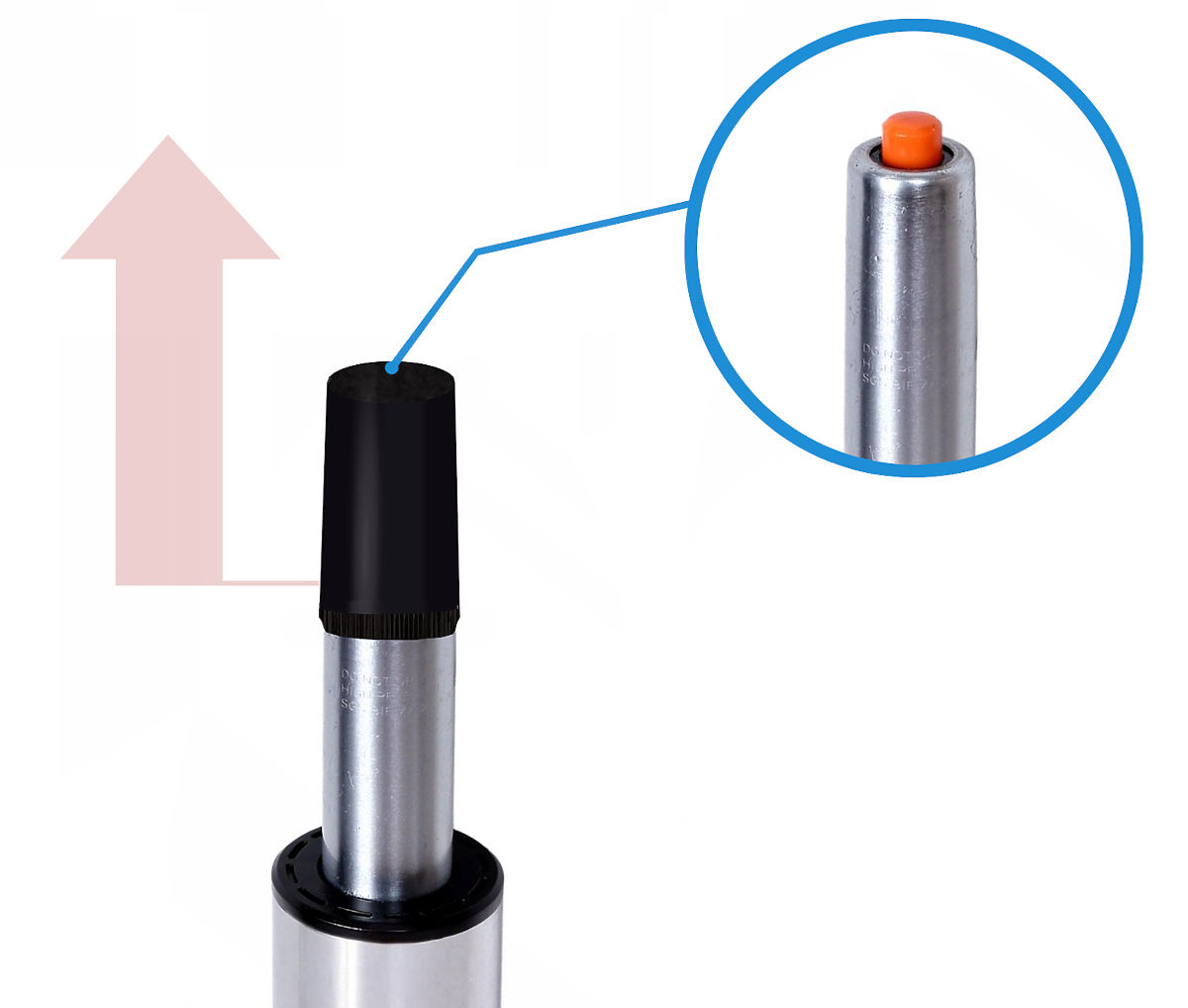 UWAGA | Na tłoku znajduje się zabezpieczenie (czarna zatyczka), które należy usunąć przed zamontowaniem siedziska.