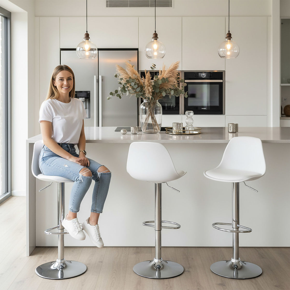 Hoker Ricardo to idealne połączenie stylu i praktyczności. Jego nowoczesny design wnosi elegancję do każdego wnętrza, a funkcje takie jak obrotowe siedzisko i regulowana wysokość zapewniają komfort użytkowania. Doskonale nadaje się do kuchni, gdzie sprawdzi się przy ladach, barach lub wyspach kuchennych. Stabilna, chromowana konstrukcja i łatwa konserwacja gwarantują, że spełni oczekiwania nawet najbardziej wymagających osób.
