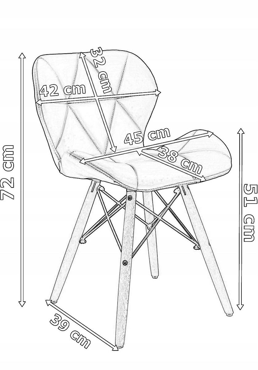 Krzesło DSW Muret - stylowe i funkcjonalne krzesło odpowiednie do różnych wnętrz. Wykonane z wysokiej jakości ekoskóry dla trwałości i łatwej pielęgnacji. Nogi z drewna bukowego zapewniają stabilność i wytrzymałość. Rama z malowanej proszkowo stali - odporna na uszkodzenia. Dodatkowe ochronne podkładki chronią podłogę. Odpowiednie do jadalni, salonu, biura lub kawiarni. Wygodne siedzenie, wyrazisty element wnętrza. Kupujesz od producenta!